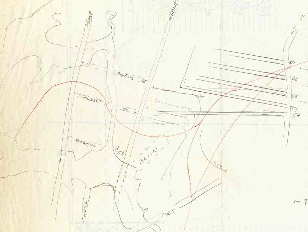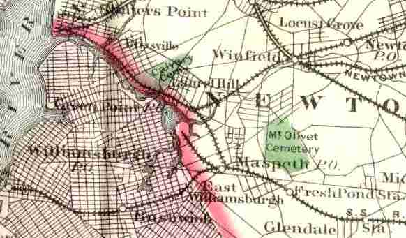 THE SOUTH SIDE RAIL ROAD IS SHOWN IN RED CROSSING MOUNT OLIVET AVENUE, LATER