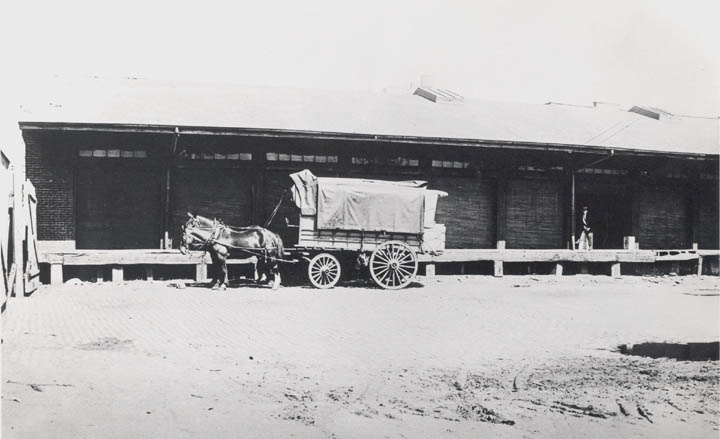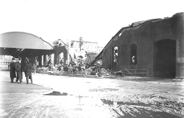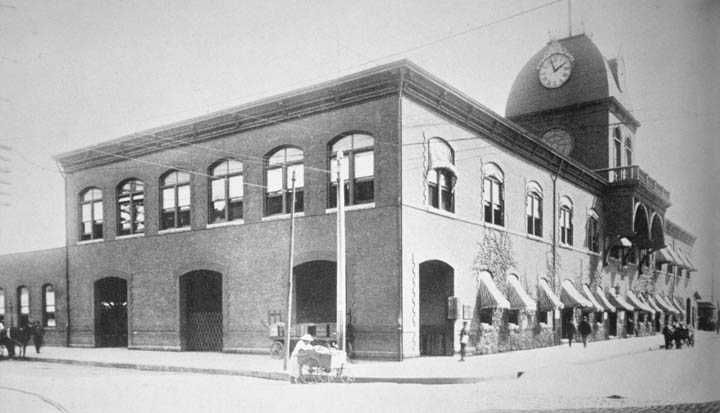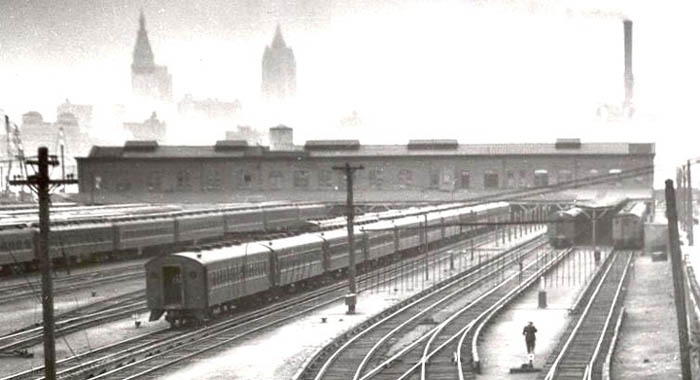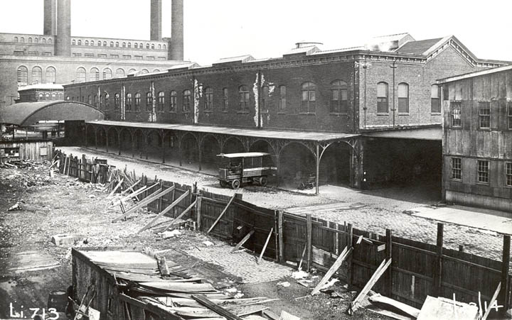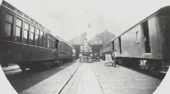 BY 1903 THE TERMINAL HAD NO TRAIN SHEDS, HAD BEEN ENLARGED AND HAD TWO TURNTABLES AT THE EAST END. IN 1903 - 04 THE TERMINAL WAS VASTLY ENLARGED AND THE TURNTABLES WERE REMOVED, REPLACED BY A NEW 70 FOOT TURNTABLE AT THE WEST END OF THE ENGINE YARD. |