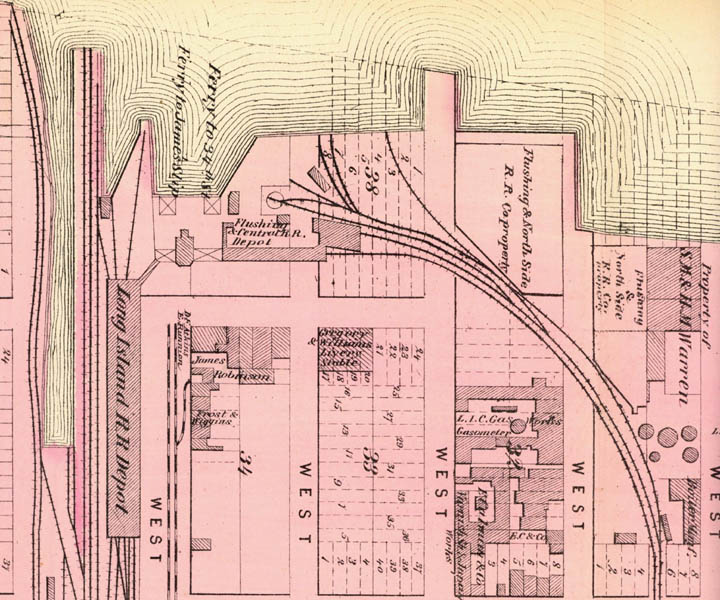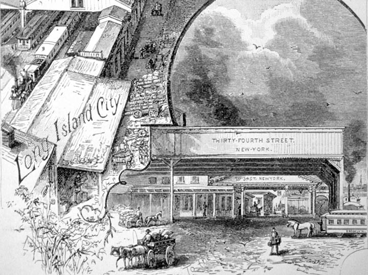 HUNTERS POINT WAS THE WESTERN TERMINAL OF THE FLUSHING RAIL ROAD WHICH OPENED JUNE 26, 1854.