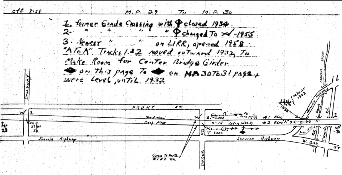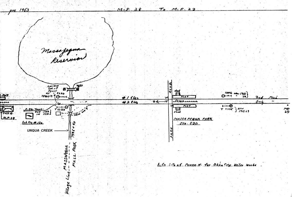 the track,     just west of Unqua road.   The Southside Railroad also had a station west of Hicksville Road called the South Oyster Bay Station."