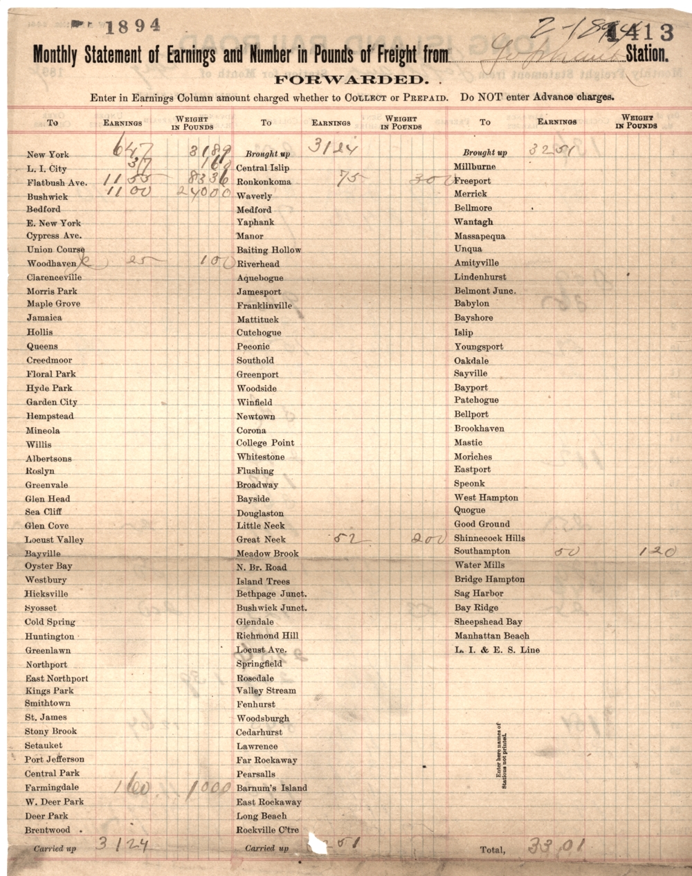 THIS FREIGHT REPORT FORM WAS PRINTED FEBRUARY 2 1894